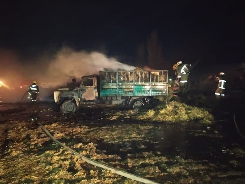 Qibray tumanida somon presslari ortilgan yuk avtomobillarida yongʻin sodir boʻlganligi yuz...