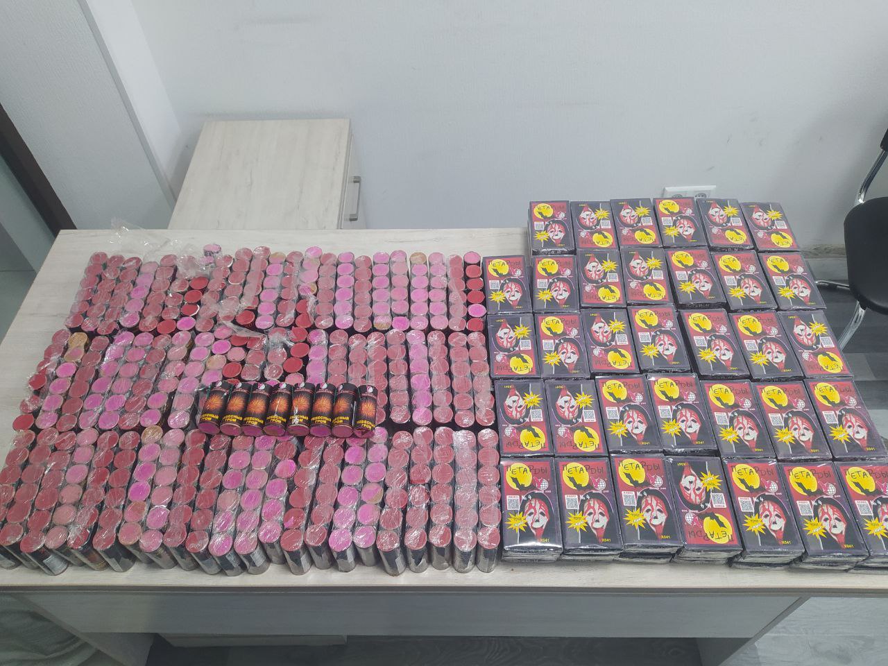 Shuningdek, 2024-yil 27-noyabr kuni soat 00:40 larda “Namangan” YPX maskanida xizmat olib borayotgan YPX xodimlari tomonidan “Kia Bongo” rusumli yuk avtomobili toʻxtatilib, xolis va guvohlar ishtirokida tekshirilganda, yukxonasida 34 ta “7 Shots”, 5 ta “9D”, 8 ta “Небесный гром”, 10 ta (har birining ichida 600 donadan) “Трения” va 48 ta “Соловей разбойник” nomli pirotexnika vositalari olib ketilayotganligi aniqlangan.
