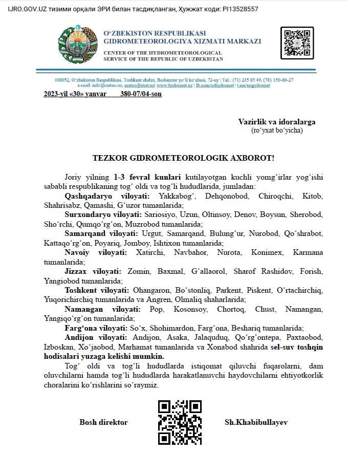 TEZKOR GIDROMETEOROLOGIK AXBOROT!