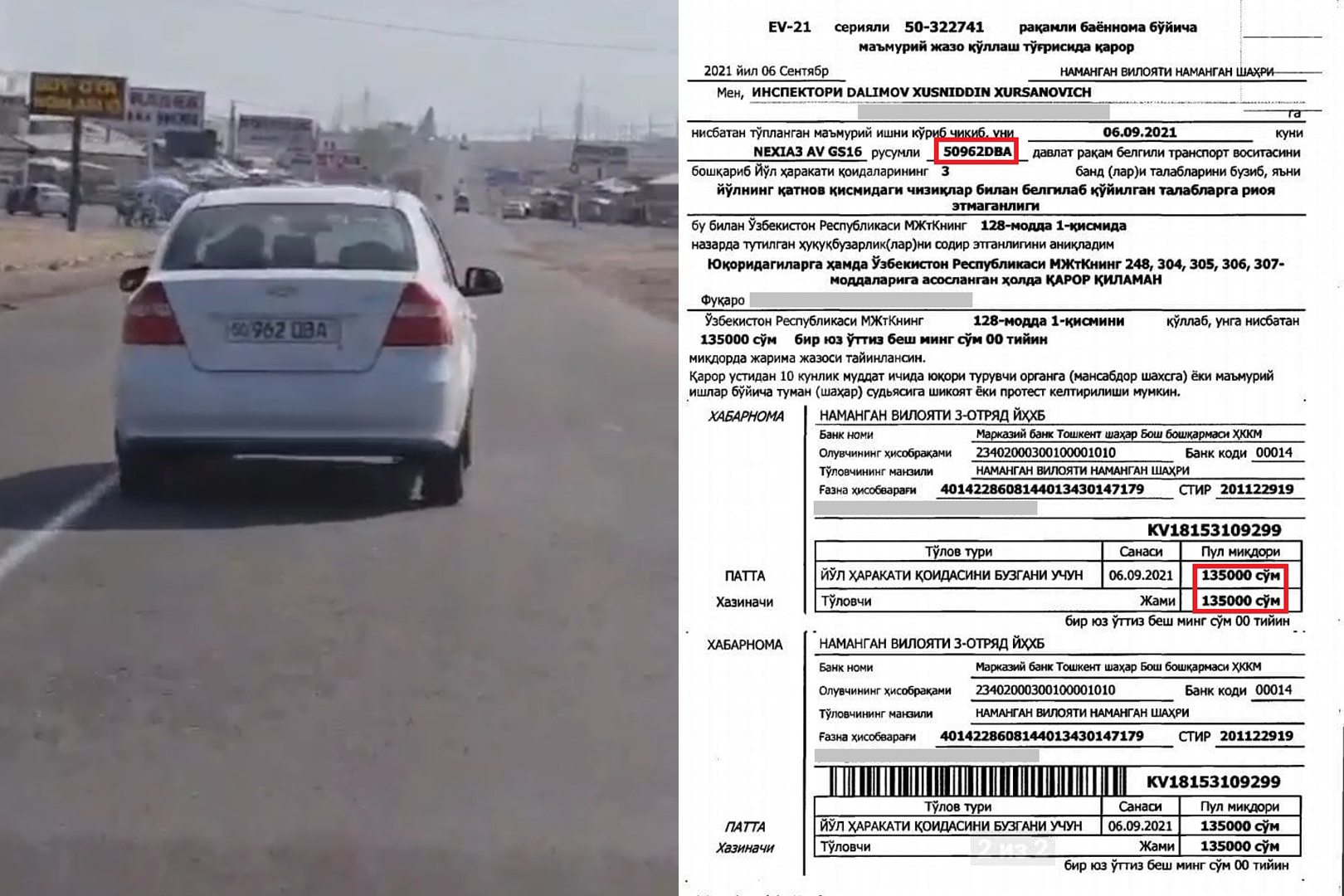 Ijtimoiy tarmoqda tarqalgan xabar o‘rganilib, qoidani buzgan haydovchiga bayonnoma tuzildi
