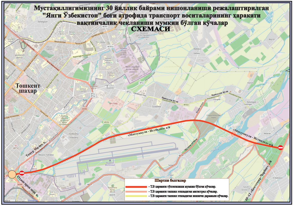 Bayram tadbiri munosabati bilan "Yangi O‘zbekiston" bog‘i atrofidagi yo‘lda transport vosi...