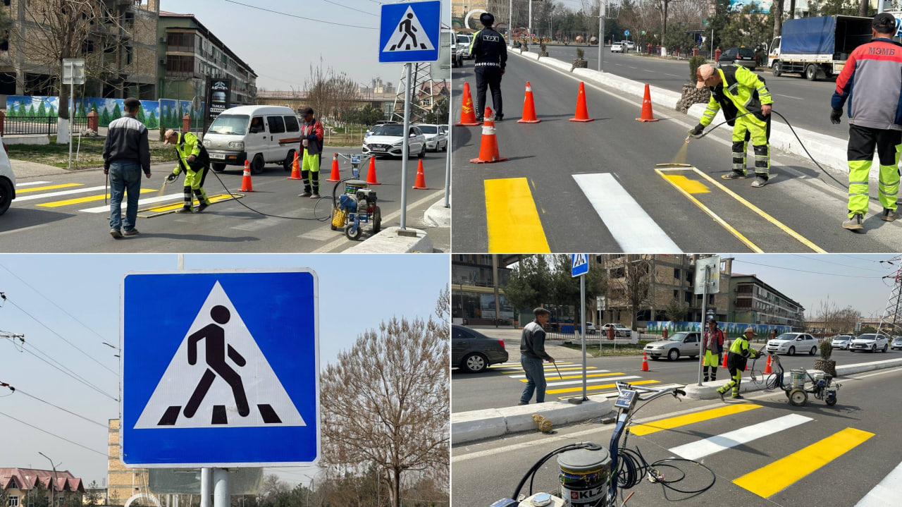 Yo‘l belgilari hamda yotiq chiziqlar yangilanmoqda