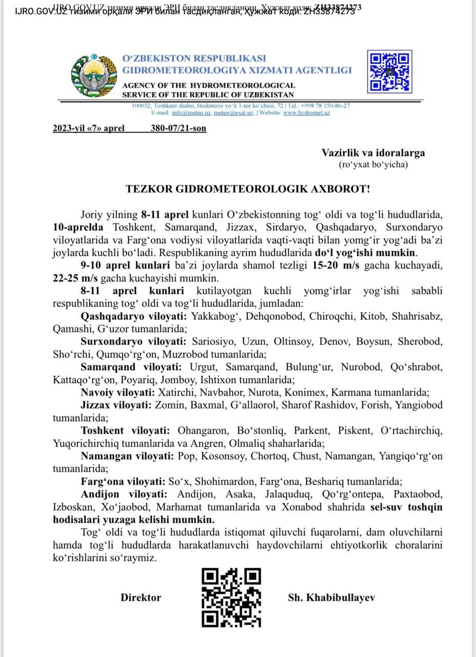 Постановления, Указы и Распоряжения Президента РУз