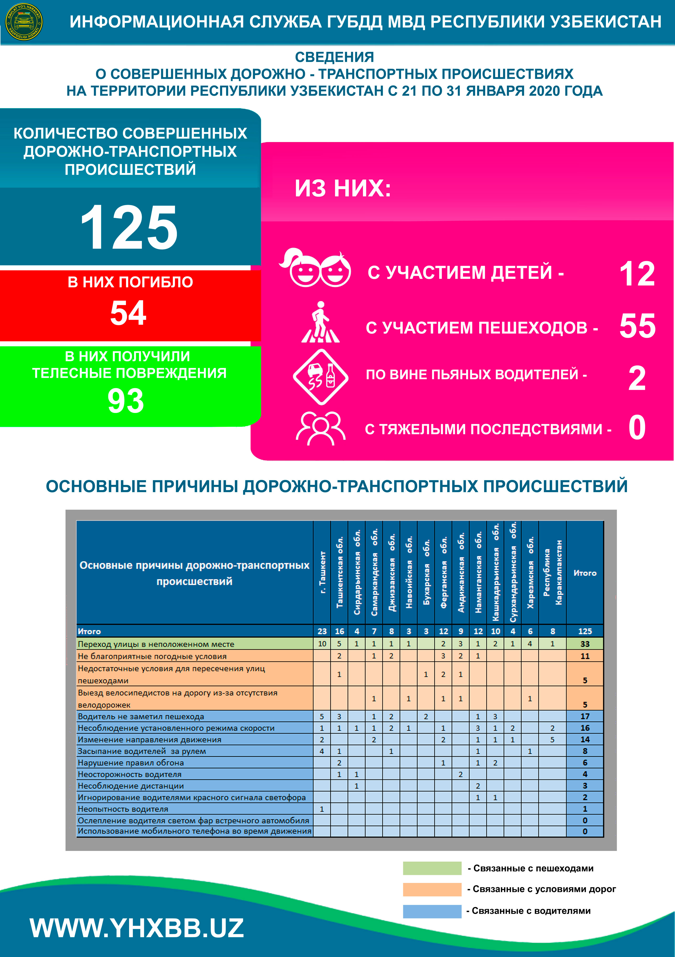 Республика ҳудудида жорий йилнинг 21-31 январь кунларида содир бўлган йўл транспорт ҳодисалари тўғрисида М А Ъ Л У М О Т