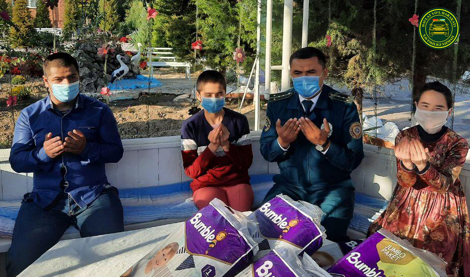 "25 октябрь - Ички ишлар органлари ходимлари куни"да Андижон вилояти ИИБ ЙХХБ ходимлари вилоятининг Қургонтепа туманидаги Муруват уйига бориб у ерда тарбияланаётган болаларга совгалар улашди. Ходимларимиз узининг байрам кайфиятини мехрга мухтож болалар даврасида бахам кўриши, ўз ўрнида болажонларнинг ҳам бир олам севинчга тўлишига сабаб бўлди. Шунингдек, шу жойнинг ўзида кичик тадбир дастури ташкил этилиб, унда болажонлар ўзлари ёд олган шеър ва қўшиқларни ДЙҲХХ ходимлари билан баҳам кўришди