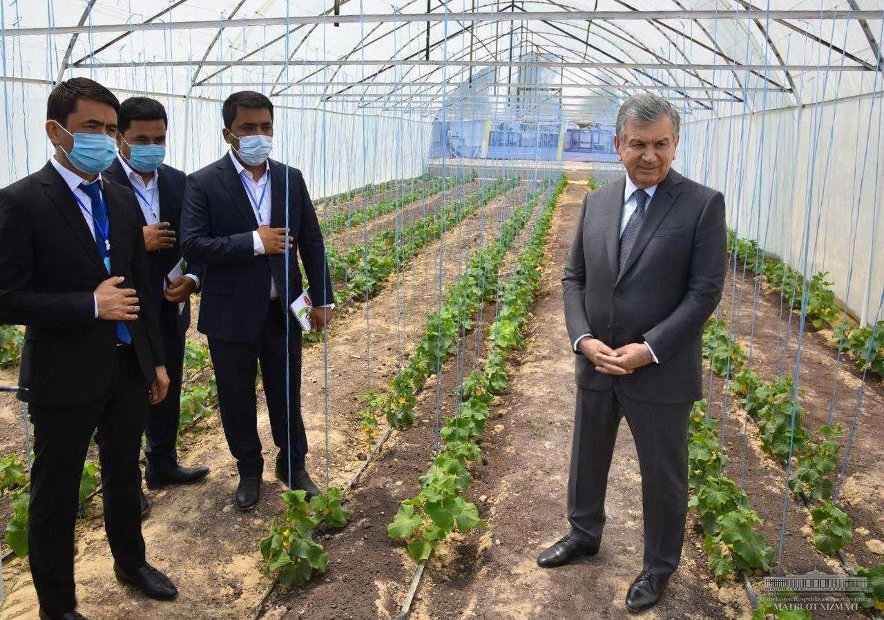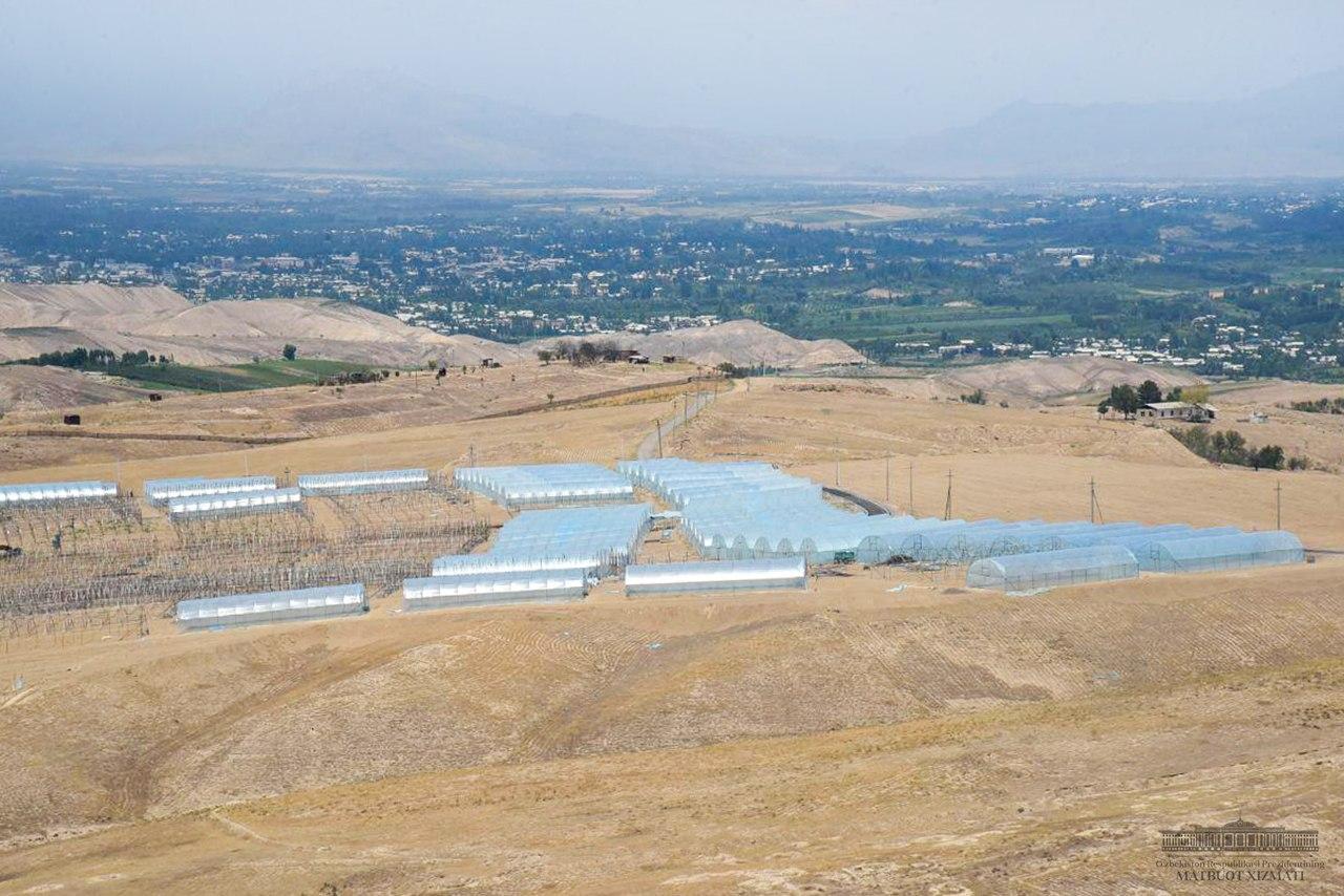 Давлатимиз раҳбари Наманган вилоятига ташрифи доирасида Чортоқ тумани Баланд адир ҳудудидаги иссиқхоналар мажмуасини барпо этиш лойиҳаси билан танишди.