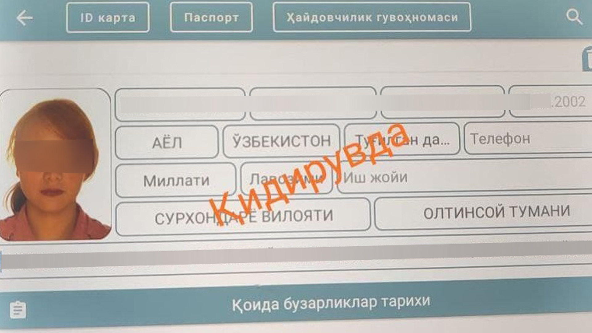 Ўғриликда айбланиб қидирувда бўлган 20 ёшли қиз пойтахтда ЙПХ ходими томонидан ушланди