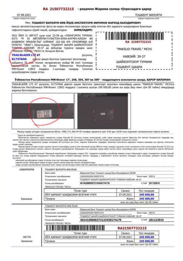 Республика ҳудудида октябрь ойида ишга туширилган онлайн режимда ишловчи фоторадарлар тўғр...