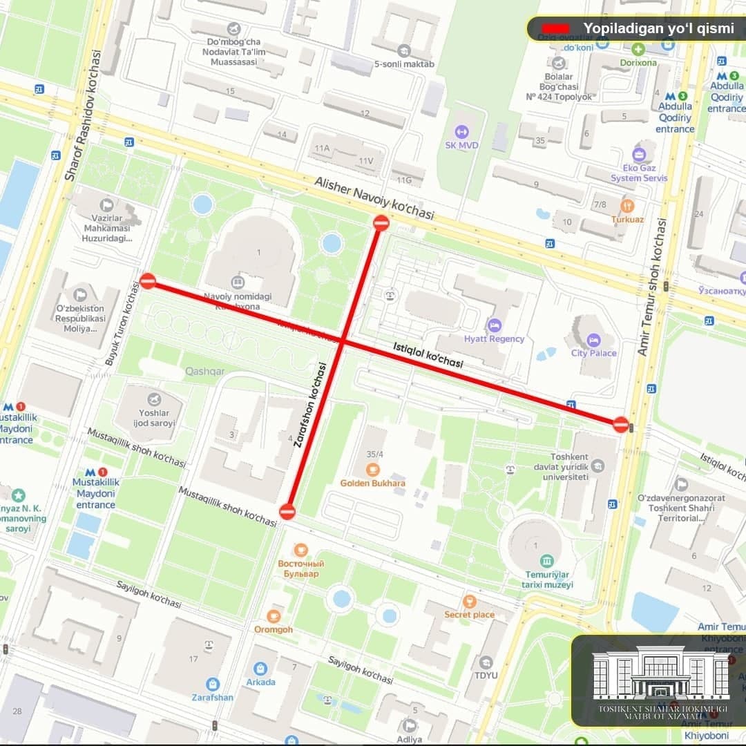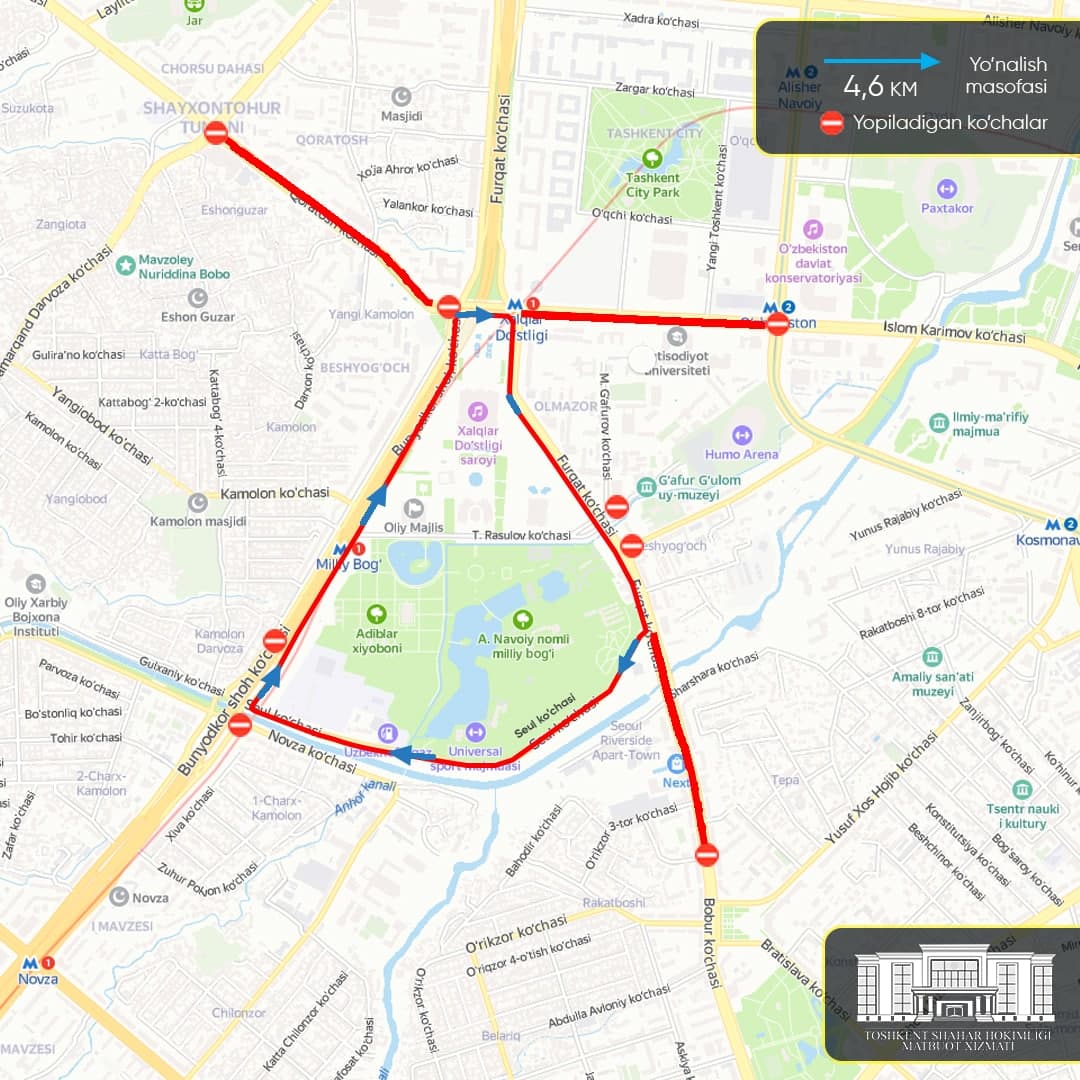 Эртага пойтахтда айрим йўл қисмлари ҳаракатланиш учун маълум муддат ёпиқ бўлади
