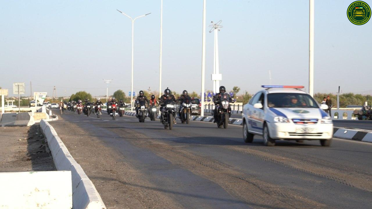 "Мотофестиваль" иштирокчилари патруль автомашиналари кузатуви остида Бухорога етиб боришди