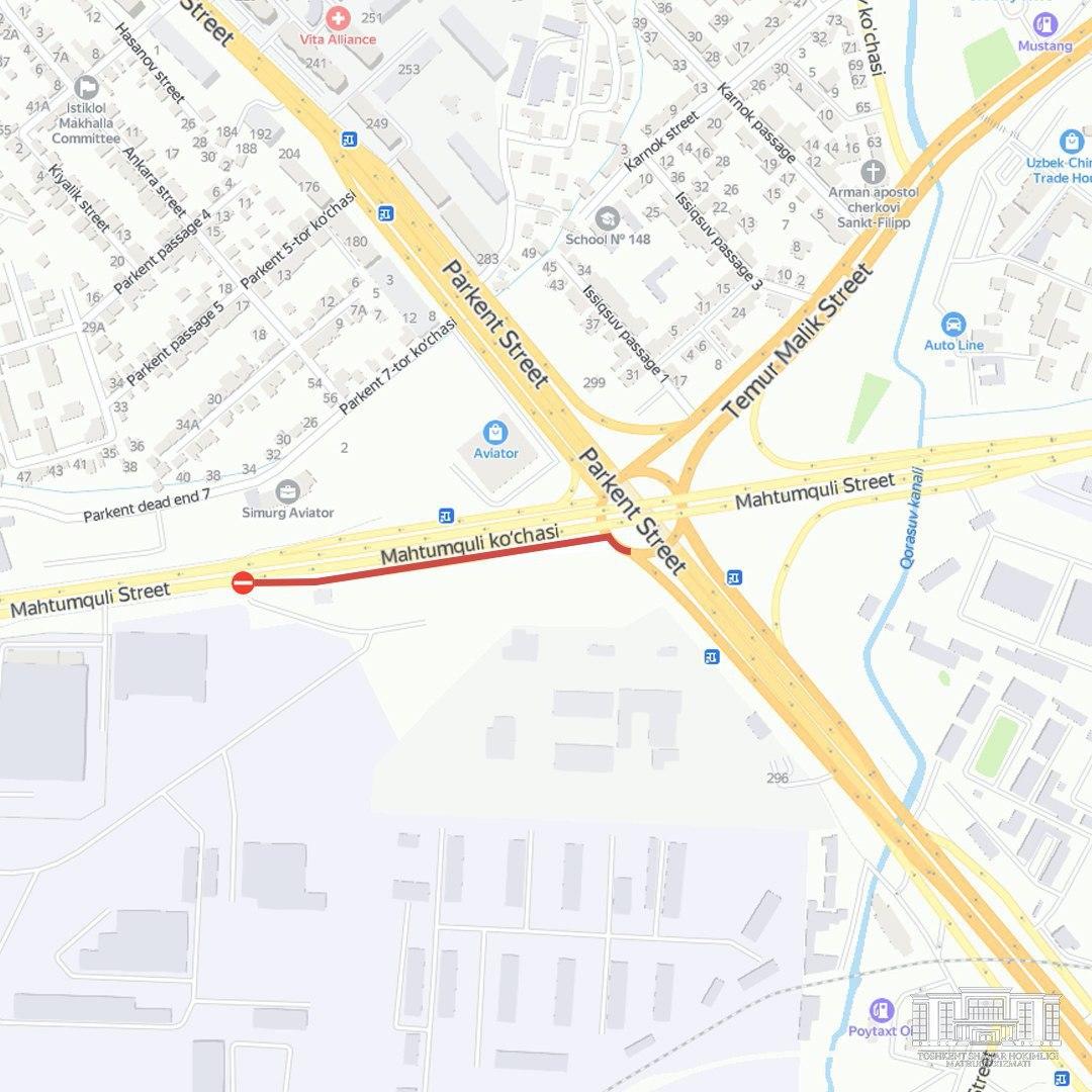 Пойтахтда Махтумқули кўчасидан Паркент кўчасига ўтиш йўли вақтинча ёпилмоқда