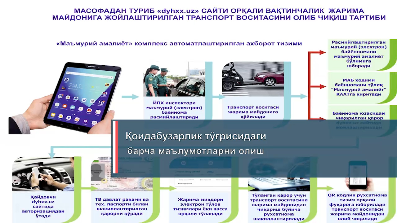 Масофадан туриб транспорт воситасини жарима майдончасидан онлайн тарзда олиб чиқиш тартиби