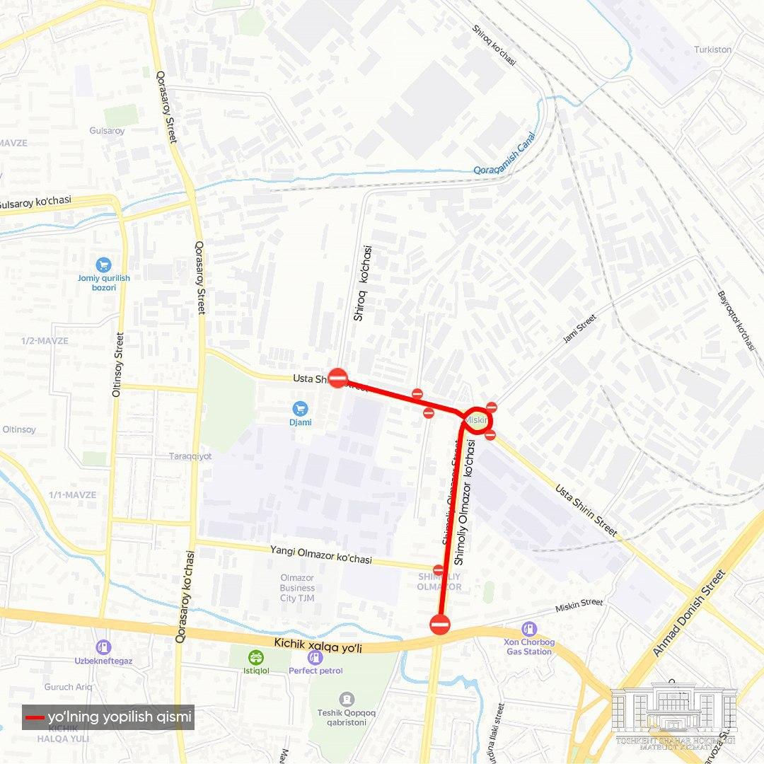 Олмазор туманидаги айрим йўллар 12 июнга қадар ёпилмоқда