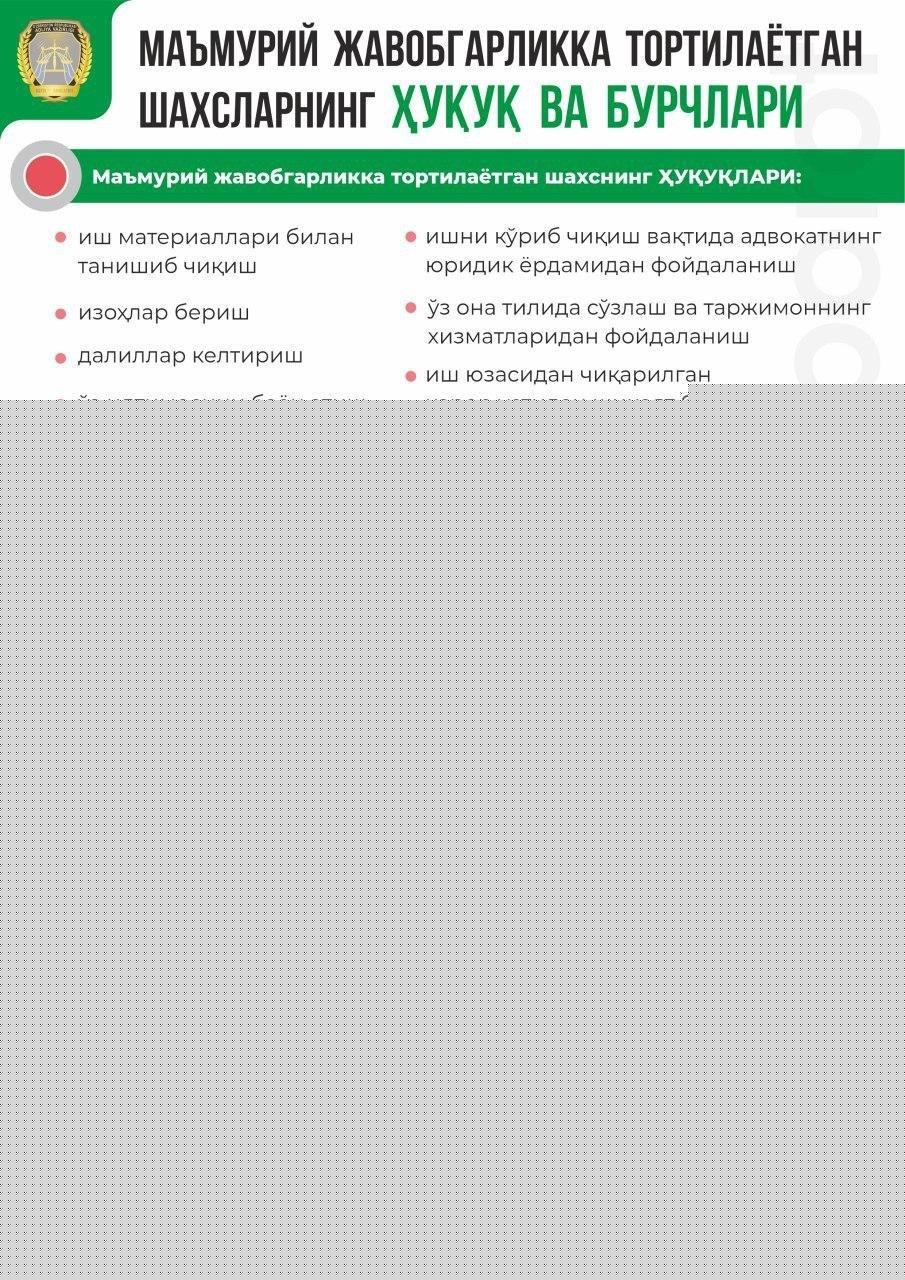 Маъмурий жавобгарликка тортилаётган шахсларнинг ҳуқуқ ва бурчларини биласизми?