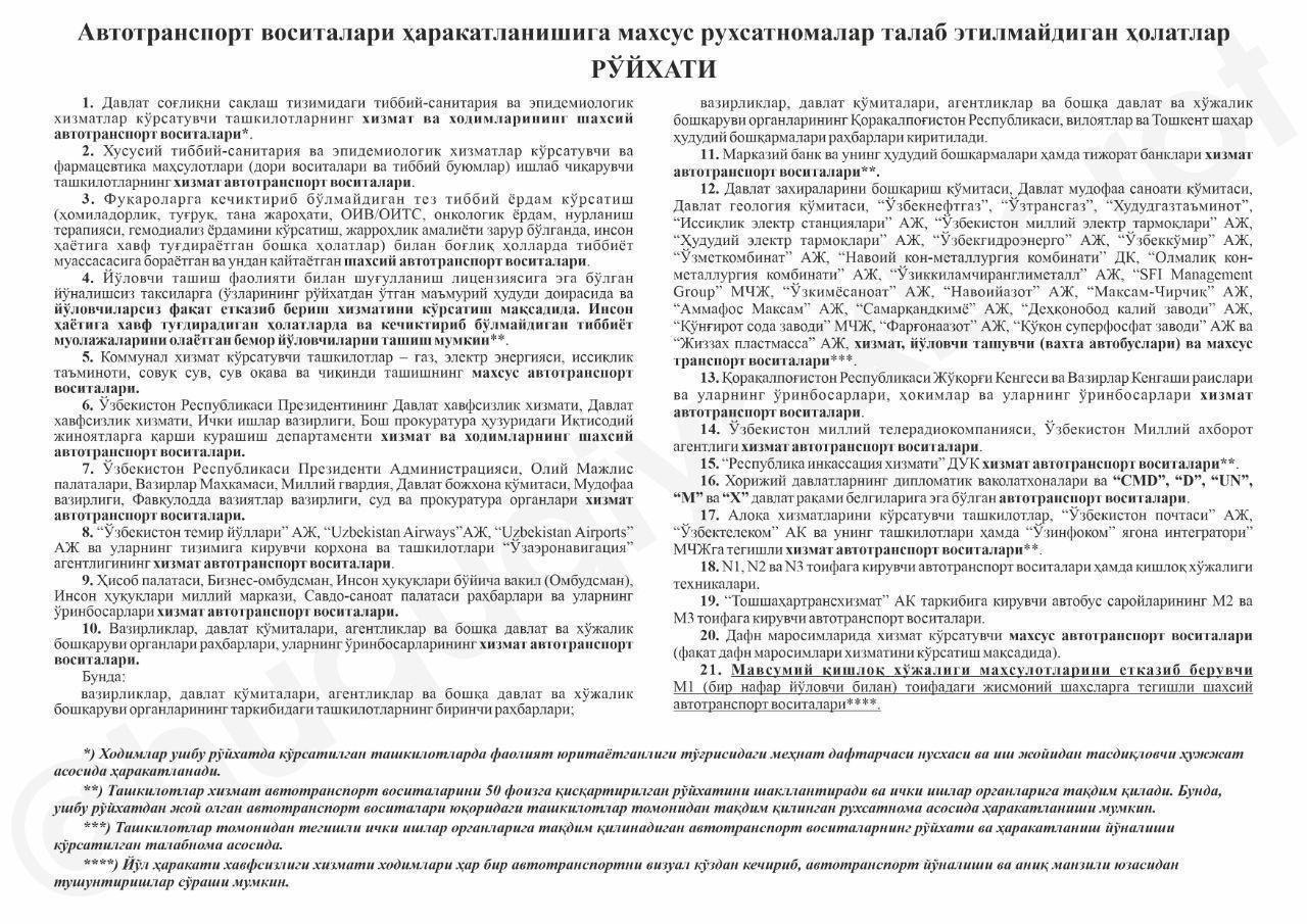 ⚡️ Автотранспорт воситалари ҳаракатланишига махсус рухсатномалар талаб этилмайдиган ҳолат...