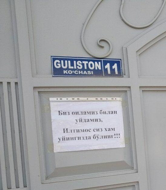 "Биз оиламиз билан уйдамиз. Илтимос сиз ҳам уйингизда бўлинг!" Фуқаролар бирдамликка чорла...