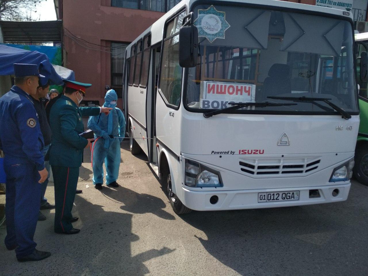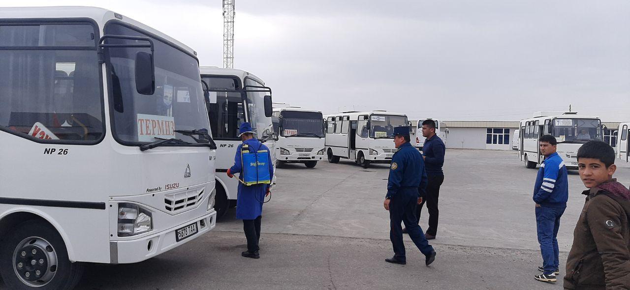 Ҳайдовчиларга йўриқномалар берилиб, транспорт воситаларида дезинфекция ишлари давом этмоқд...